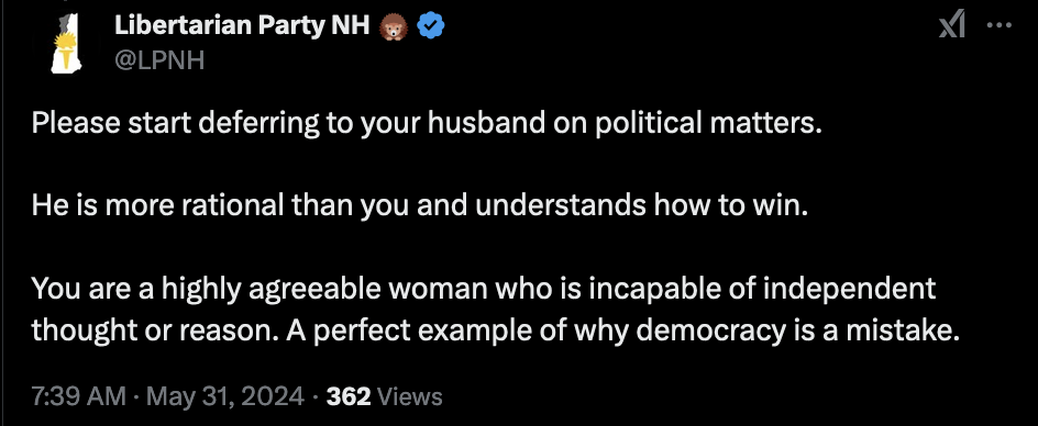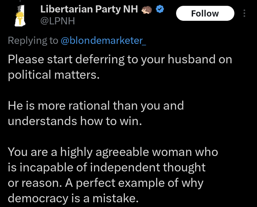 However, some of these tweets are evidence that the current regime was trying to sabotage the LPNH in favor of the NH GOP, or lacks the maturity to run a political party.