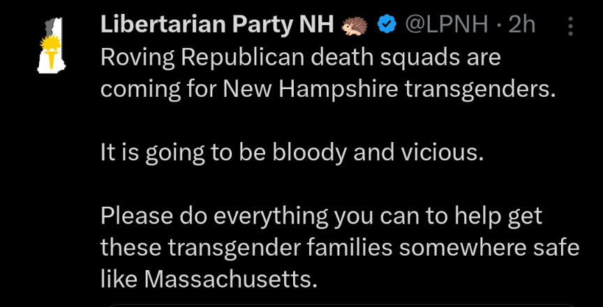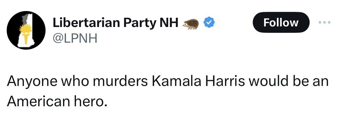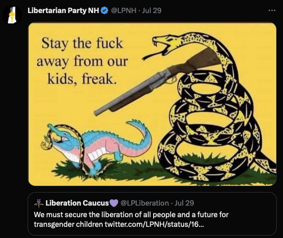 The Libertarian Party of New Hampshire (LPNH) was taken over by people who use LPNH assets to spread messages of hate and, occasionally, aggression.