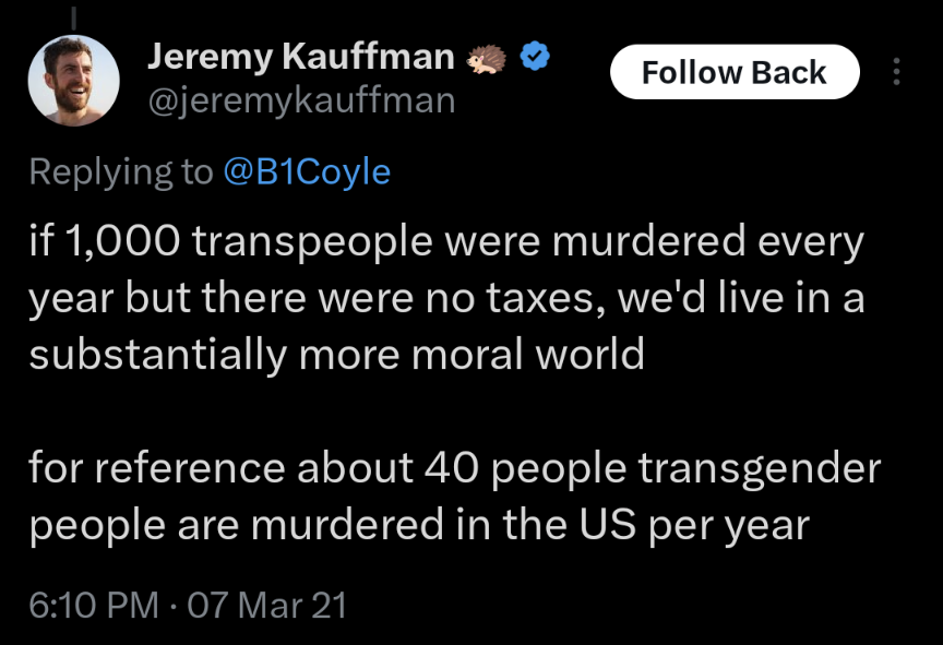 For examples of how we apply this principle to derive our public policies, please see the radical platform of the Libertarian Party of CA as amended in 2021.